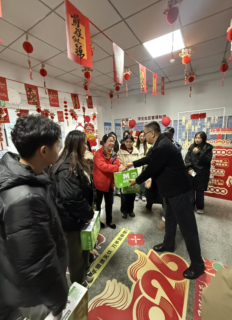 下午,学院党委书记宋育果、党委副书记娄哲与全体辅导员深入学生宿舍开展慰问走访,与同学们一同体验投壶雅趣,欣赏剪纸作品,亲切交流互动。随后,院领导一行慰问了在岗宿管人员与在校学生,细致了解同学们的学习生活状况,并送上节日问候与暖心鼓励。